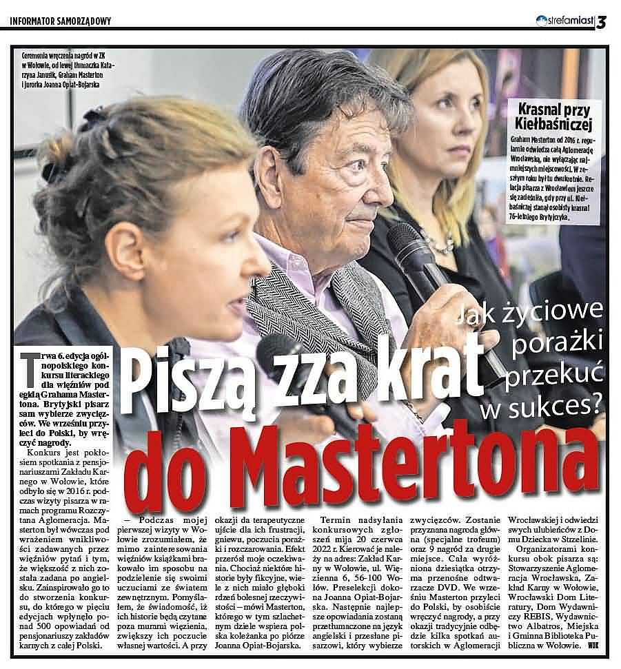 - 09/03/24: From Graham: 'This is my (very heavy) award presented at a gala evening at the Poznan Book Fair by Lubimy Czytac the Polish readers’ group. Szopital Filomeny (The House At Phantom Park) was voted Best Horror Novel of 2023, with novels by Jo Nesbo and Dean Koontz as runners-up.'