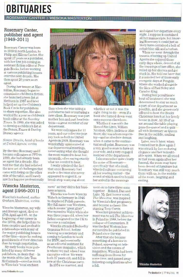 - Due to circumstances beyond their control, Graham and Wiescka Masterton will not now be travelling to Paris on October 28/29. The author very much regrets that he won't be able to meet all of his French and Belgian friends at the Collectors' Weekend. Instead he hopes to visit Paris early in 2001. As for the presentation of the Prix Masterton, further details will be posted as and when they're available.